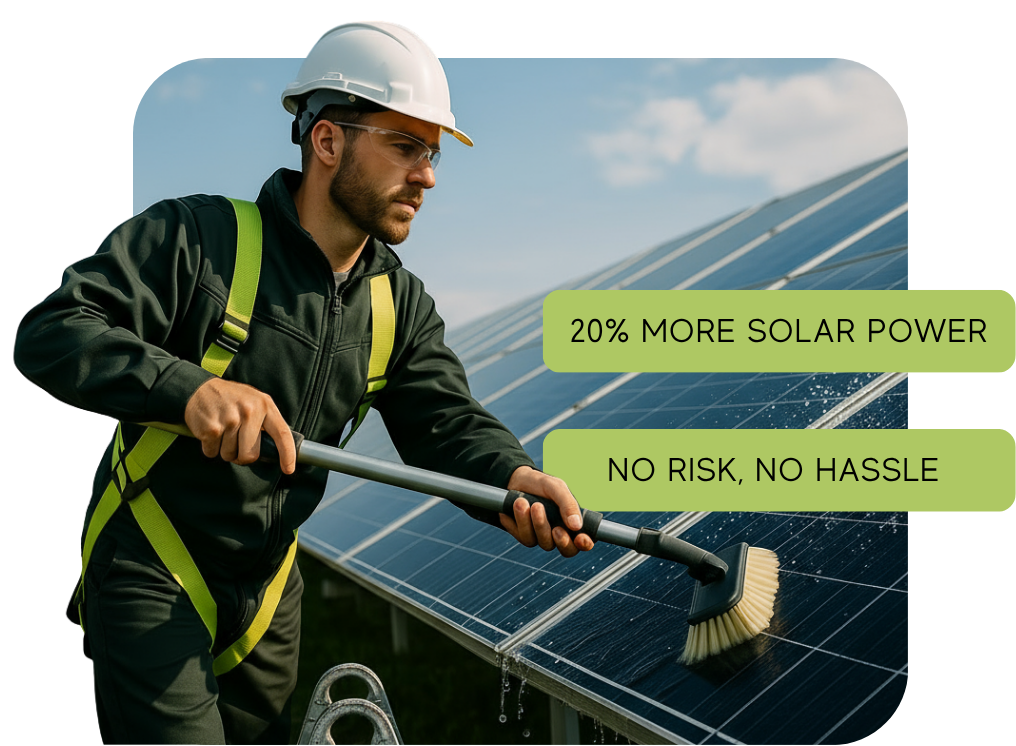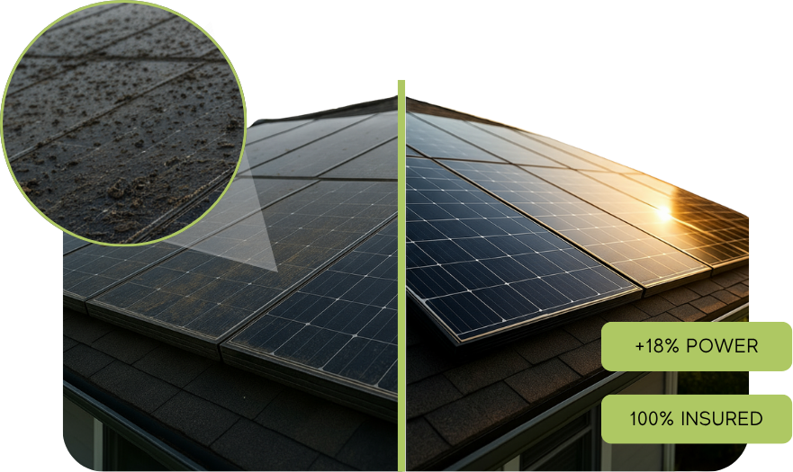 Dust, pollen, and buildup block sunlight quietly drain up to 20% of your solar power. Rain won’t clean it, it just spreads the grime.