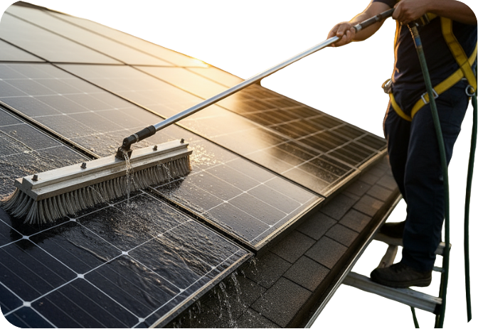 Your O3-approved technician uses purified water and soft solar brushes, no harsh chemicals, no shortcuts, no roof risk.