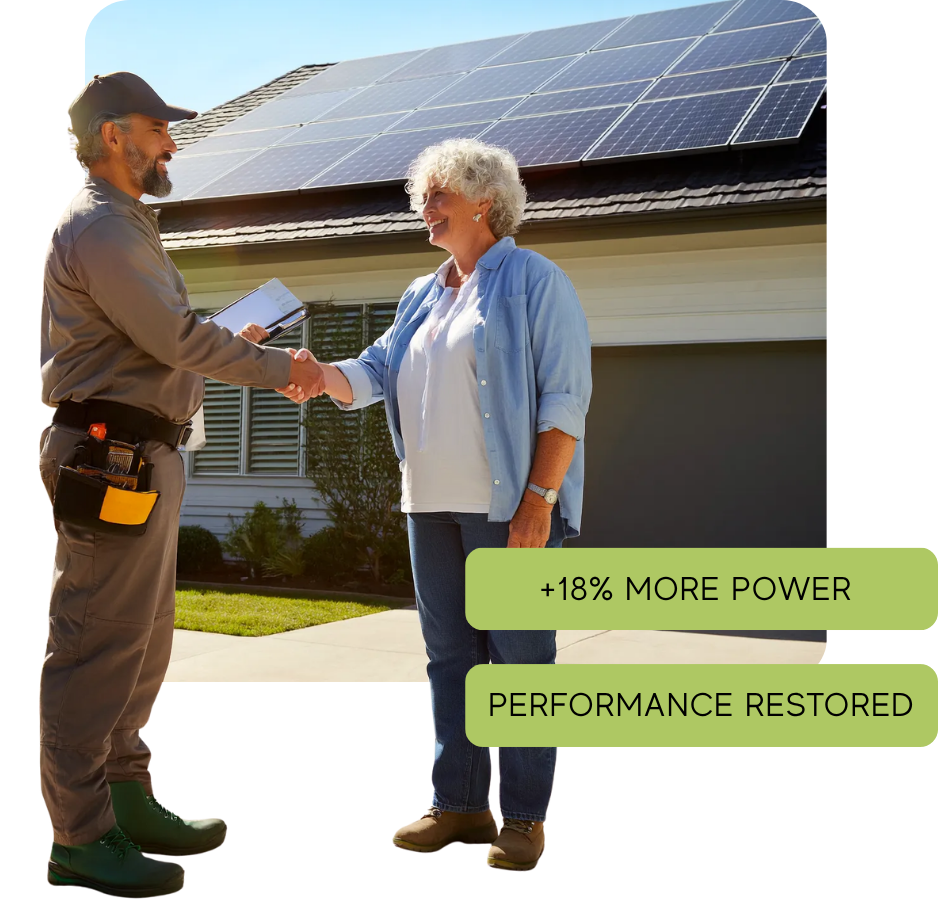 Homeowners who’ve never had a professional cleaning see an average 20% boost in solar production after their first service.
